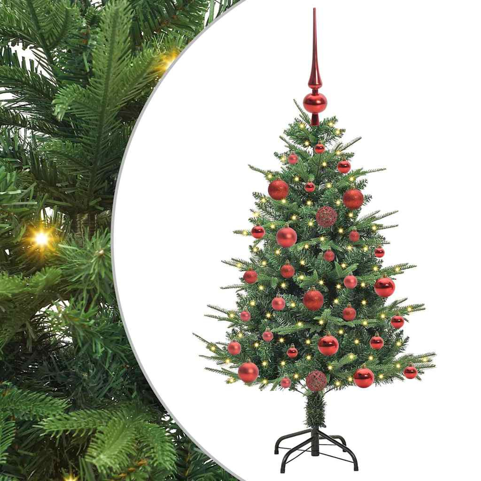 vidaXL Umjetna predsvetljena božićna jelka s kompletom kroglica Zelena