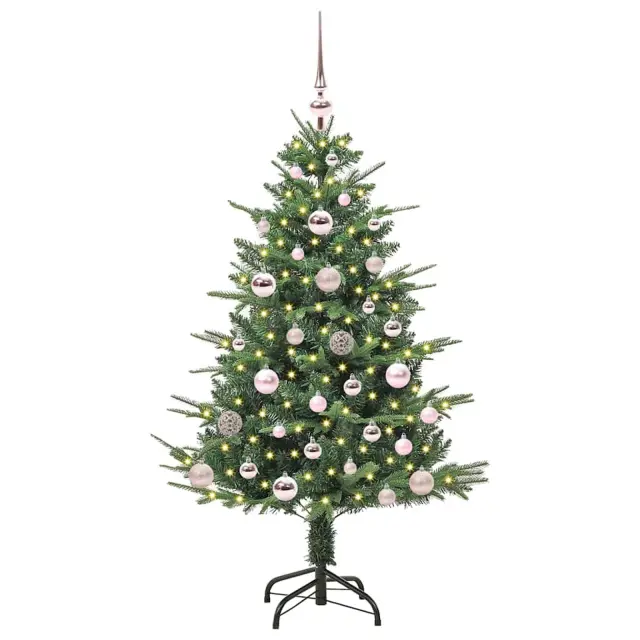 vidaXL Umjetna predsvetljena božićna jelka s kompletom kroglica Zelena