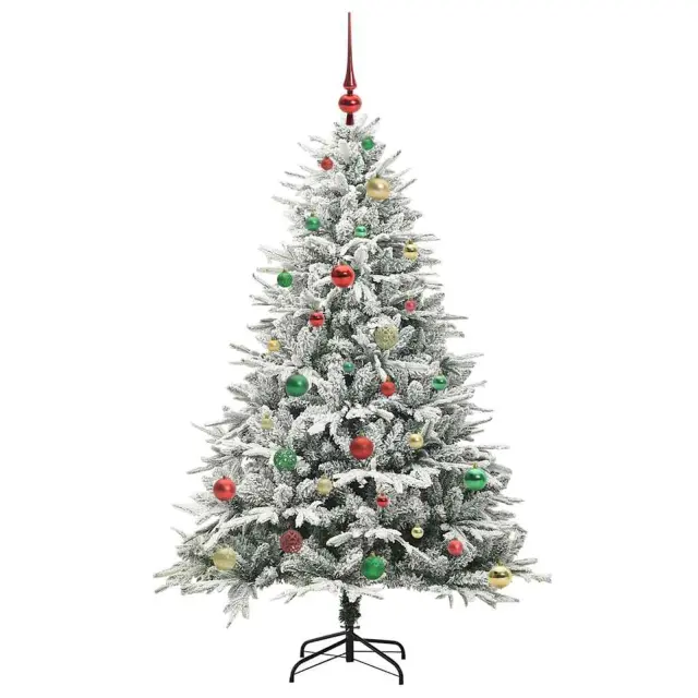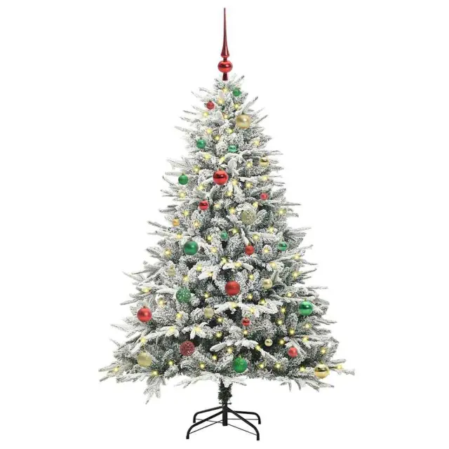 vidaXL Umjetna predsvetljena božićna jelka s kompletom kroglica Zelena