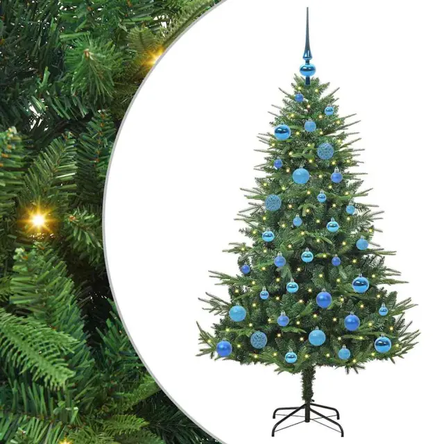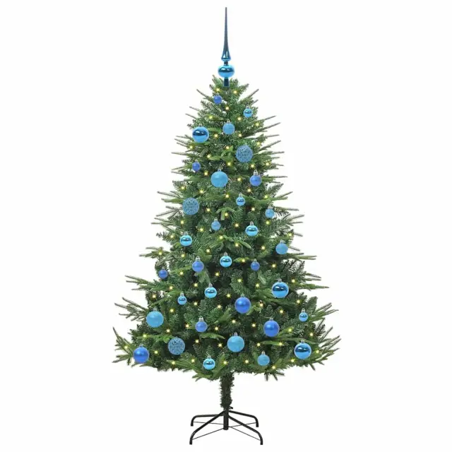 vidaXL Umjetna predsvetljena božićna jelka s kompletom kroglica Zelena