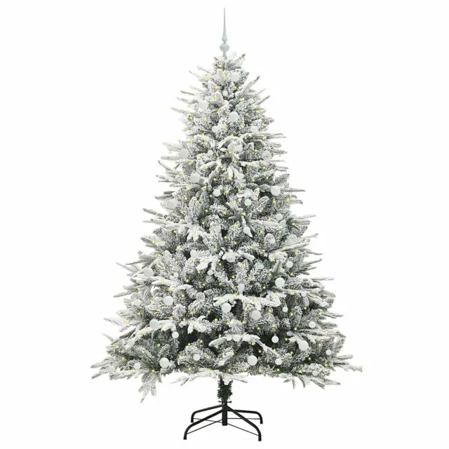 vidaXL Umjetna predsvetljena božićna jelka s kompletom kroglica Zelena