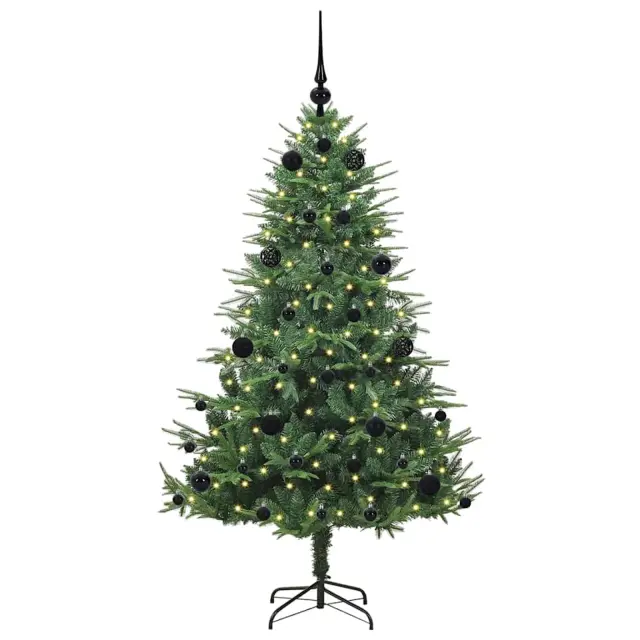 vidaXL Umjetna predsvetljena božićna jelka s kompletom kroglica Zelena