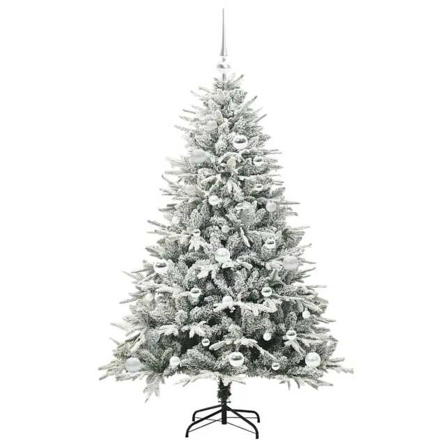vidaXL Umjetna predsvetljena božićna jelka s kompletom kroglica Zelena