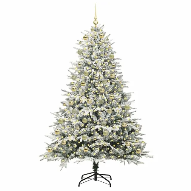 vidaXL Umjetna predsvetljena božićna jelka s kompletom kroglica Zelena