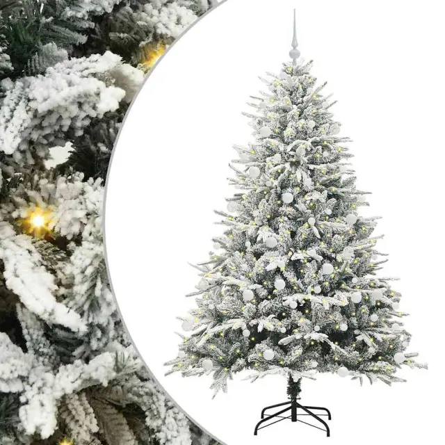 vidaXL Umjetna predsvetljena božićna jelka s kompletom kroglica Zelena