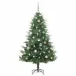 vidaXL Umjetna predsvetljena božićna jelka s kompletom kroglica Zelena