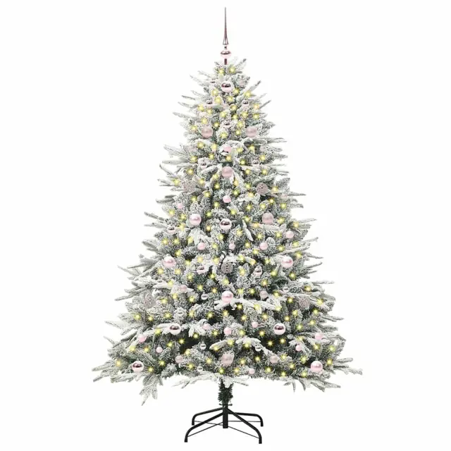vidaXL Umjetna predsvetljena božićna jelka s kompletom kroglica Zelena