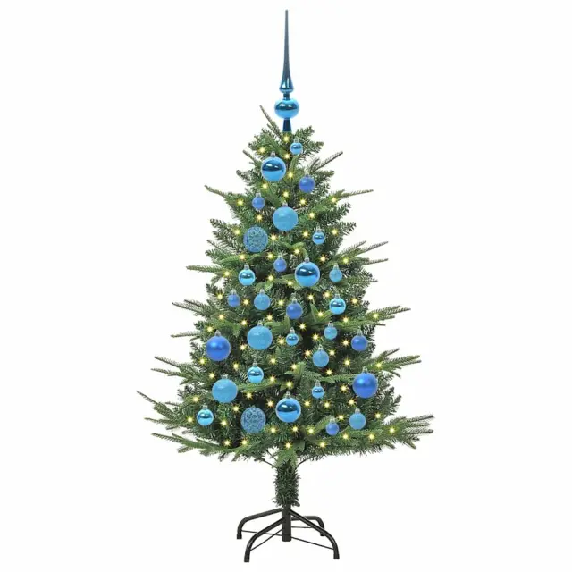 vidaXL Umjetna predsvetljena božićna jelka s kompletom kroglica Zelena