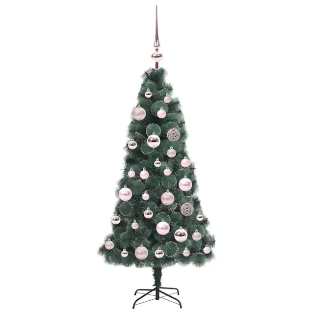 vidaXL Umjetna predsvjetlena božična jelka s setom kroglic 120 cm