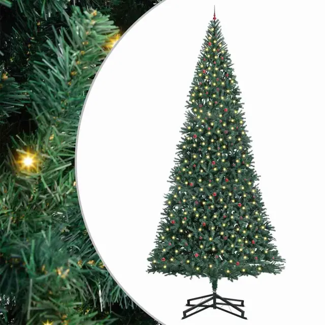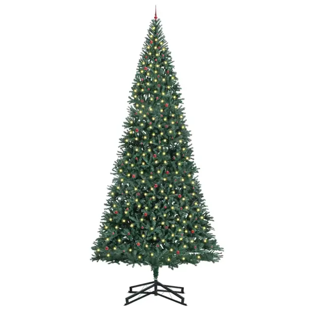 vidaXL Umjetno praznično drevo s svetlobami in kroglicami Zelena