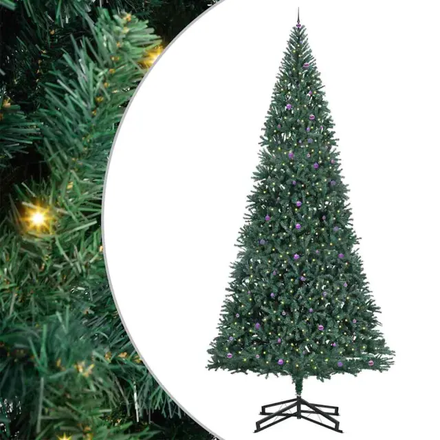 vidaXL Umjetno praznično drevo s svetlobami in kroglicami Zelena