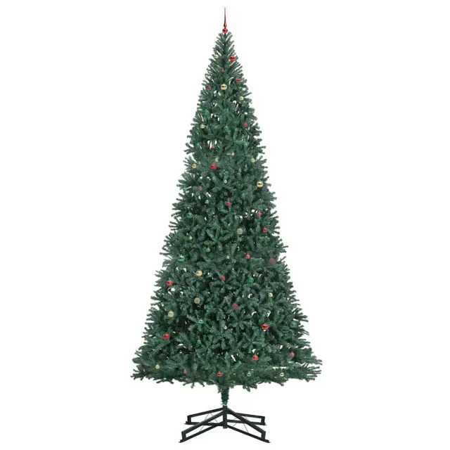 vidaXL Umjetno praznično drevo s svetlobami in kroglicami Zelena