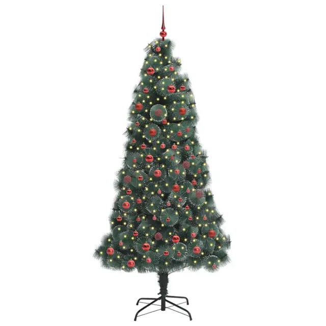 vidaXL Umjetno praznično drevo s svetlobami in kroglicami 210 cm
