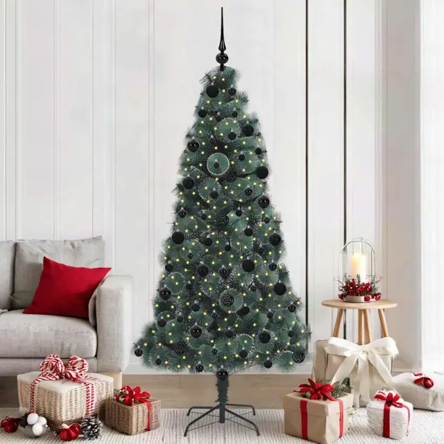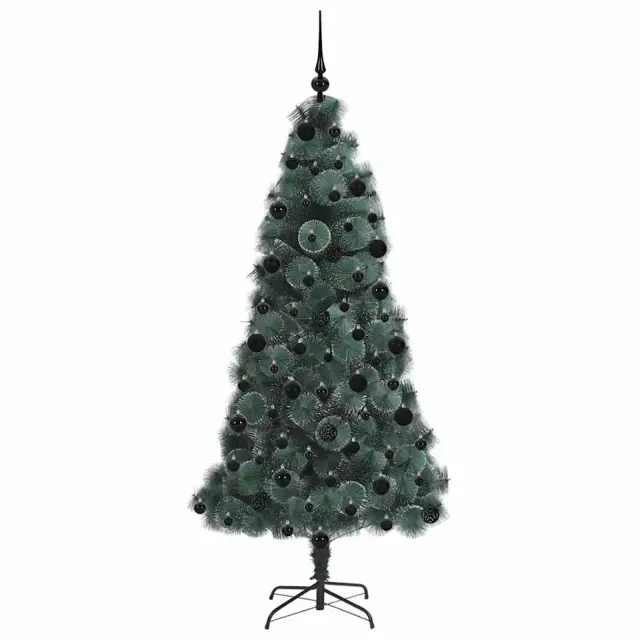 vidaXL Umretna praznična jelka z žogicami z stojalom Zelena 210 cm PET