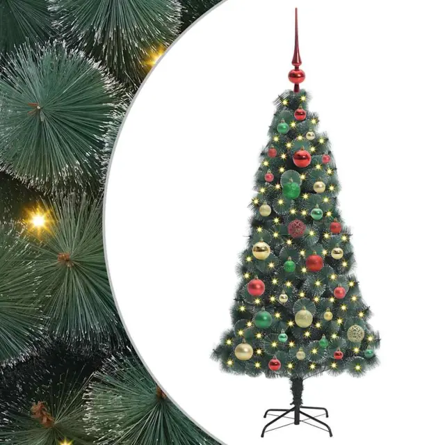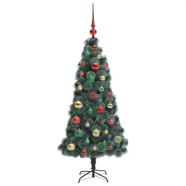 vidaXL Umretno predhodno osvetljeno božično drevo s kompletom krogel