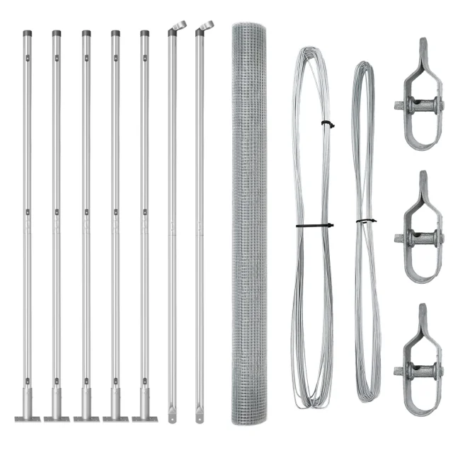 vidaXL varjena žična ograja s 7 flanšastimi koli 1,5x10 m pocinkano jeklo