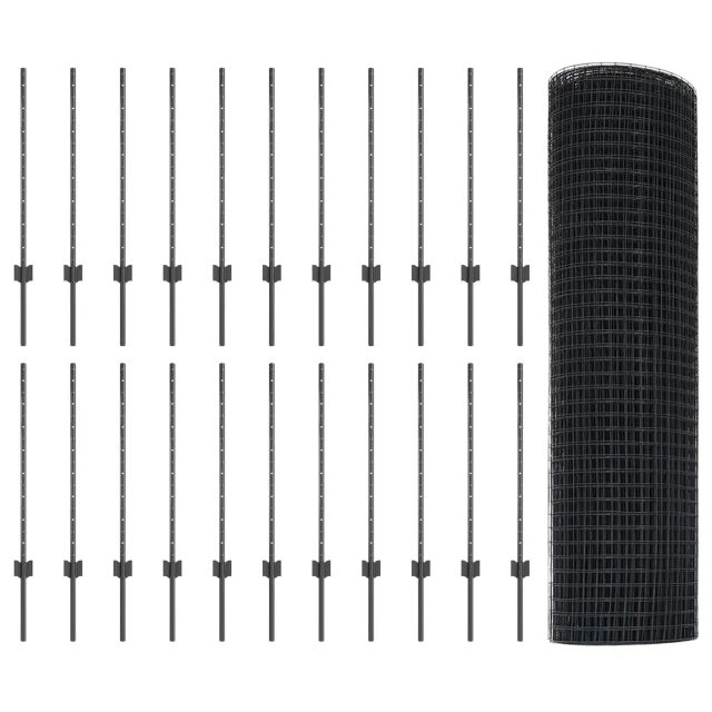 VidaXL varjena žična ograja z 22 U stebrički Siva 0,8x50 m Jeklo