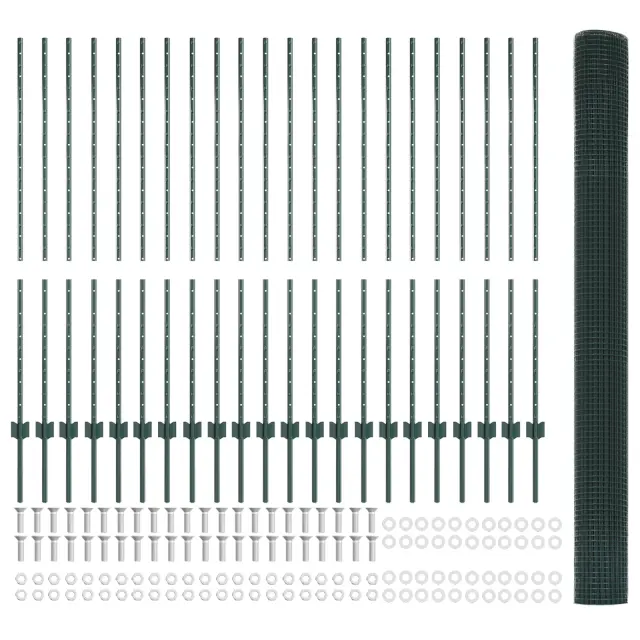vidaXL varjena žična ograja z 22 U stebrički Zelena 1.4 x 50 m Jeklo