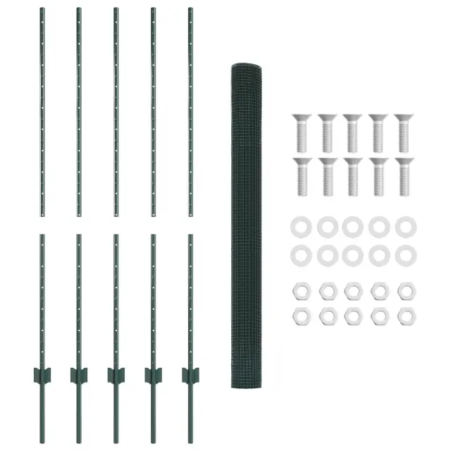 vidaXL varjena žična ograja z 5 U stebrički zelena 1.4x10 m jeklo
