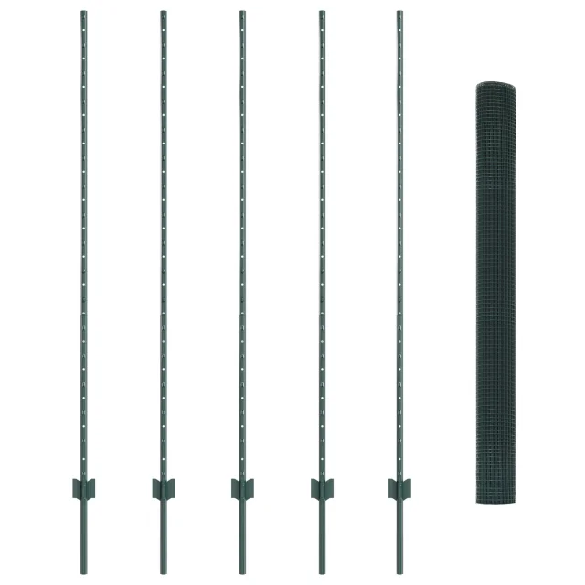 vidaXL Varjena žična ograja z 5 U stebrički Zelena 1.6x10 m Jeklo