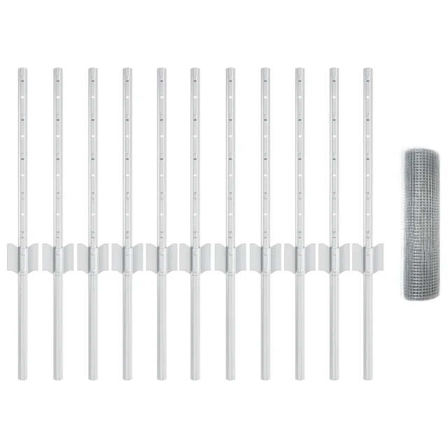 vidaXL varjena žičnata ograja s 11 U stebrički srebrna 0.4x25 m jeklo