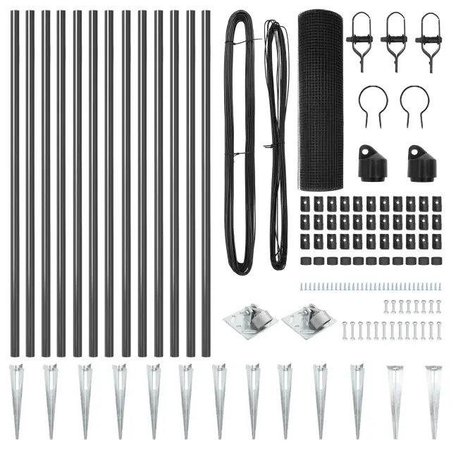 vidaXL varjena žičnata ograja s 13 špicastimi stebri siva 0.4x25 m jeklo
