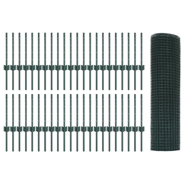 vidaXL Varjena žičnata ograja s 44 U stebrički Zelena 0.4x100 m Jeklo