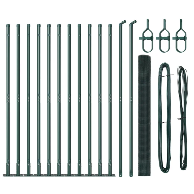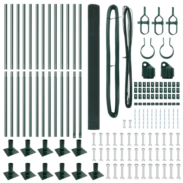 vidaXL varjena žičnata ograja z 13 stebri z razširjenim spodnjim delom Zelena 1.4x25 m Jeklo
