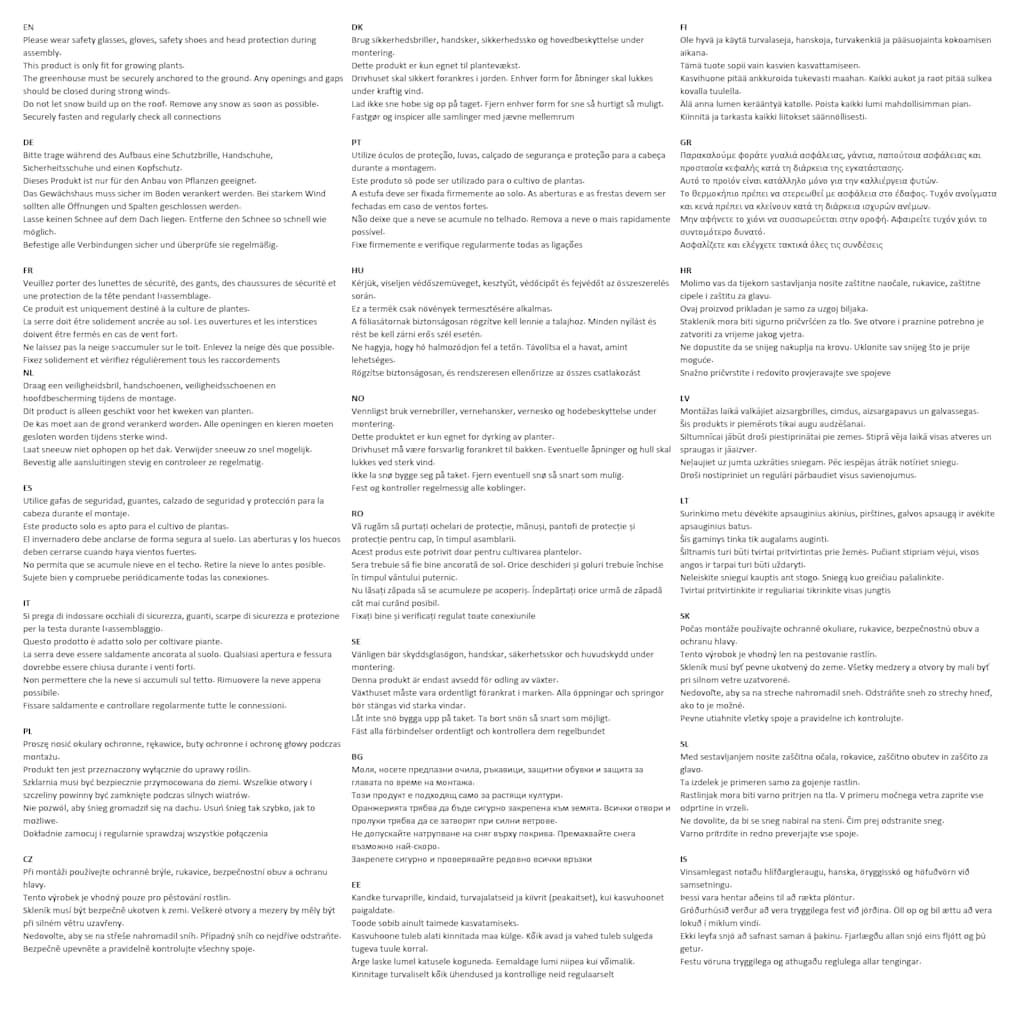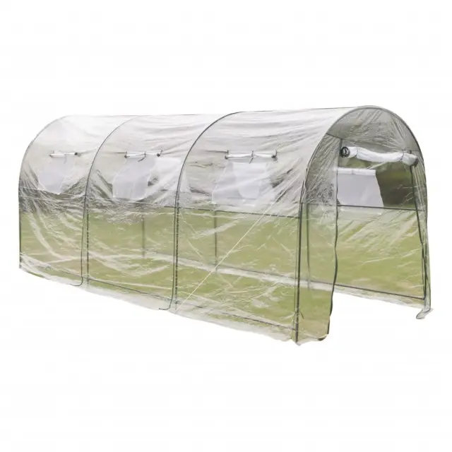 Ta rastlinjak je idealen za nove in izkušene vrtnarje. Vanj lahko namestite precejšnje število rastlin, odličen pa je tudi za semena in zaščito vaših rastlin pred hladnim vremenom. Rastlinjak ima prosojno streho, ki omogoča, da sončna svetloba doseže vaše rastline in rože. Ima UV zaščito, poleg tega pa je tudi varen pred zmrzaljo, zato vremenske razmere na rastlinjak ne bodo vplivale. Odporen je tudi na trganje, zato je odlična alternativa običajnim, steklenim rastlinjakom. Jeklen okvir z oblogo iz umetne mase je močan in trden, kljub temu pa je presenetljivo lahek. Sprednja vrata imajo zadrgo, ki omogoča enostavno vstopanje, poleg tega pa zagotavljajo tudi dober pretok zraka. Montaža je varna in enostavna. Ta rastlinjak se lahko hitro postavi s pomočjo priložene vrvi, zato ne boste potrebovali posebnega orodja. Prosimo vedite, da streha našega rastlinjaka ne more prenesti večje količine snega.Dimenzije: 450 x 190 x 200 cm (D x Š x V)Barva: ProsojnaOkvir: Jeklene cevi z oblogo iz umetne maseProsojno pokrivalo, ki je odporno na trganje6 oken, s komarnikom1 sprednja vrata z zadrgamiTkanina: PVC: 100% 40785