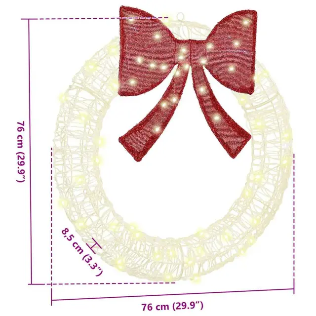vidaXL Venec z LED lučmi Toplo bela 75 cm Akril