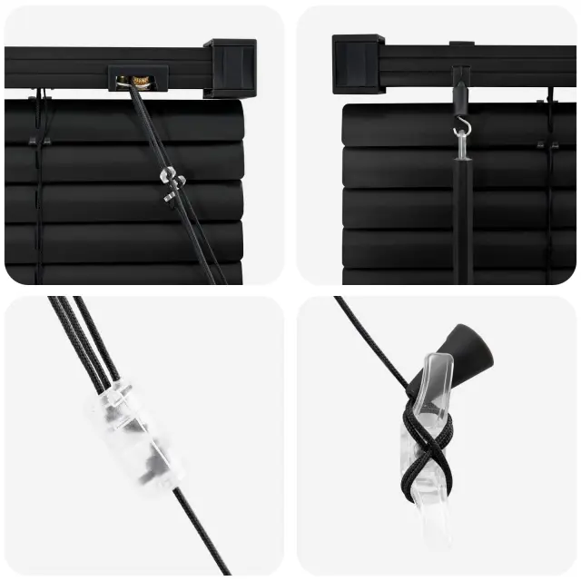 • Osnovne sestavine: Senčila vsebujejo vrtečo palico za enostavno prilagajanje, zaščitno sponko za varnost otrok in komplet dodatkov za montiranje. Te lastnosti omogočajo natančen nadzor svetlobe ter enostavno namestitev v kateri koli prostor.