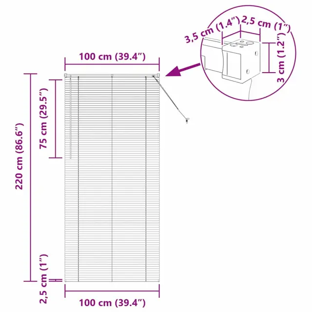 vidaXL Venecijanske žaluzije Bela 220 x 100 cm Aluminij