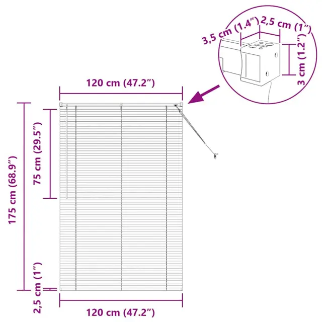 vidaXL Venecijanske žaluzije Črna 175 x 120 cm Aluminij