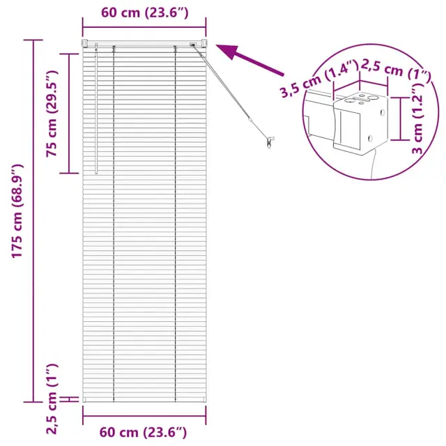 vidaXL Venecijanske žaluzije srebrna 175 x 60 cm Aluminij