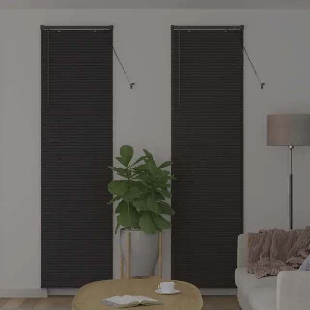 Te moderne venecijanske žaluzije združujejo slog in funkcionalnost, zasnovane za lep izgled in praktično uporabo v notranjih prostorih. Čiste linije in minimalna okrasitev poudarjajo njihov sodoben slog, hkrati pa zagotavljajo nadzor nad soncem in zasebnostjo. Njihov vsestranski dizajn se lepo prilega različnim stilom, ponujajoč elegantno in zadržano rešitev za obdelavo oken.