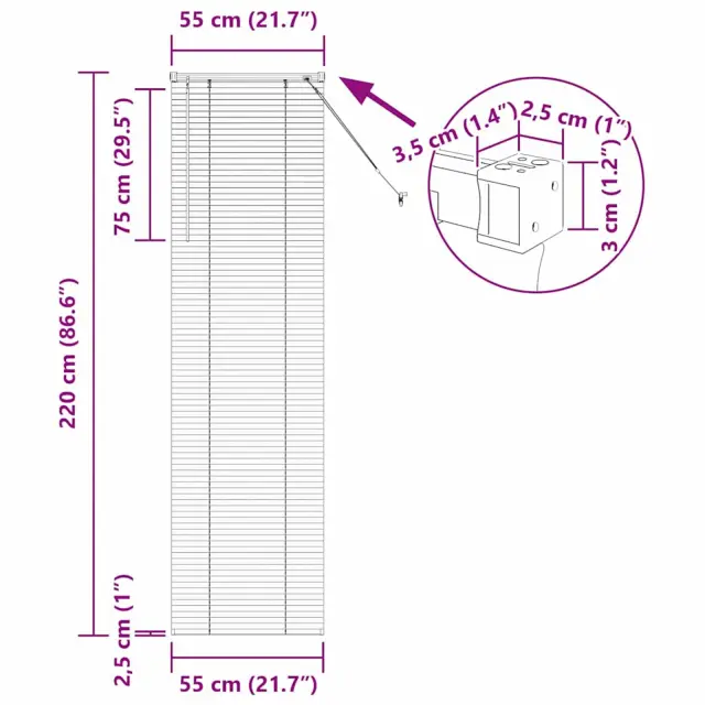 • Splošne dimenzije: 220 x 55 cm (D x Š)