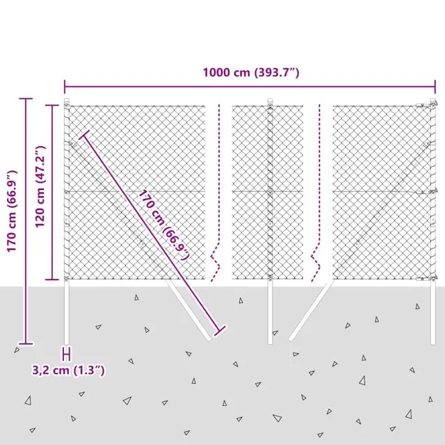 vidaXL Verižna ograja s stebri Siva 1.2 x 10 m Jeklo