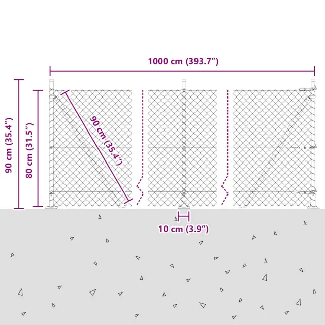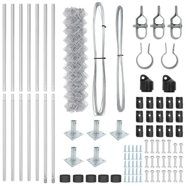 vidaXL Verižna ograja s stebri srebrna 0.8 x 10 m Jeklo