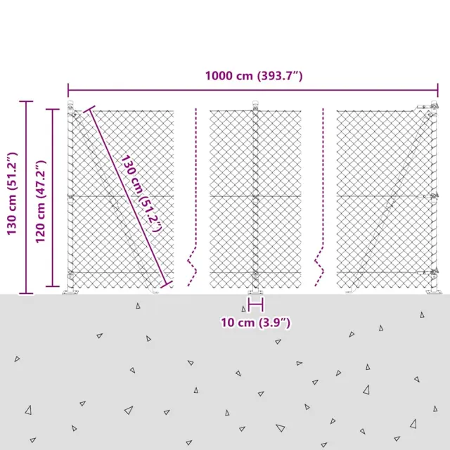 vidaXL Verižna ograja s stebri srebrna 1.2 x 10 m Jeklo