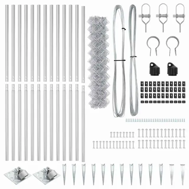 vidaXL Verižna ograja s stebri srebrna 1.2 x 25 m Jeklo