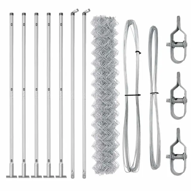 vidaXL Verižna ograja s stebri srebrna 1.4 x 10 m Jeklo