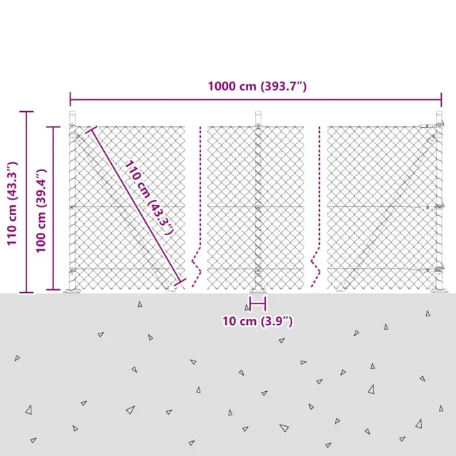 vidaXL Verižna ograja s stebri srebrna 1 x 10 m Jeklo