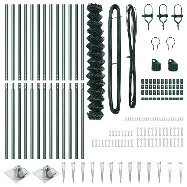 vidaXL Verižna ograja s stebri Zelena 1.5 x 25 m Jeklo