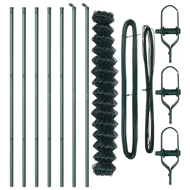 vidaXL Verižna ograja s stebri Zelena 1.6 x 10 m Jeklo
