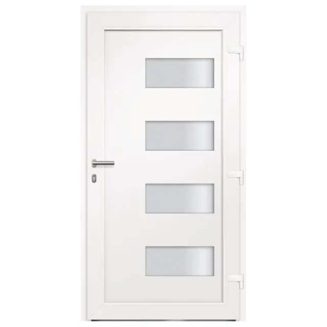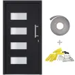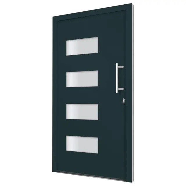 Ta vhodna vrata so posebej zasnovana, da bodo obogatila vhodni prostor v vaši hiši ter zagotovila dodatno varnost vašega doma. Združujejo eleganco z odličnim dizajnom in tehničnimi lastnostmi za vse, ki želijo namestiti vrata. Ta vhodna vrata so opremljena s stabilnim okvirjem in polnilom, aluminijastim pragom, nastavljivimi tečaji, 5-smerno varnostno ključavnico s kavljem in sornikom, izolacijsko zasteklitvijo in ojačitvijo iz pocinkanega jekla. Vhodna vrata, izdelana iz aluminija in PVC materiala, navdušujejo tudi z robustno kakovostjo in visoko priročnostjo zaklepanja. Priložen je celoten komplet, vključno z inox potisnim ročajem, notranjo kljuko, ključi, tesnilnim trakom in kompletom za montažo.Barva: AntracitnaMaterial: PVC, aluminij s prašnim premazom, sendvič polnilo s stiroporomVelikost: 100 x 200 cm (Š x V)Teža vrat: 60,3 kgOpremljena z aluminijastim pragomVelikost aluminijastega praga: 7 x 3 cm (Š x V)Debelina aluminijastega praga: 1,5 mmDebelina profila okvirja in vratnega krila: 70 mmS PVC folijo v notranjostiZunanjost s prašno premazano aluminijasto ploščo3-slojna toplotno zaščitna zasteklitev po ISO standarduVelikost zasteklitve: 46 x 20 cm (Š x V)3 tečaji nastavljivi po višini in globiniIntegrirana zaščita vzvodaOdpiranje znotraj 3-stranskega tesnila v vratnem krilu5-stopenjska varnostna zasnova s kavljem in sornikomPocinkana jeklena ojačitev pravokotnega profilaUD vrednost 1,3 W / m²KDesno odpiranje navznoterKomplet kljuk za vrata:Inox potisni ročaj 350 mmInox kljukaVključuje 2 rozetiMontažni set:Vključuje 8 plastičnih zagozd, 6 podložk, 6 stenskih sider in 6 kovinskih moznikov (montažni vijaki)Tesnilni trak:Predstisnjena pena8 m na roliPotrebno sestavljanje: DaPaket vsebuje:1 x Vrata1 x Komplet kljuk1 x Komplet ključevTesnilni trakKomplet za montažo 3056824