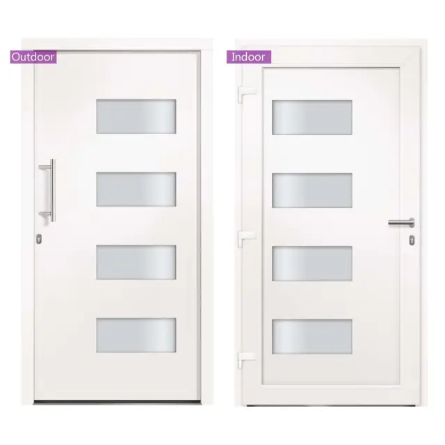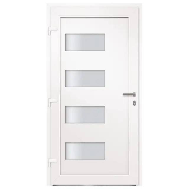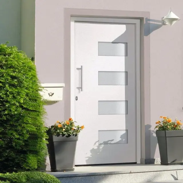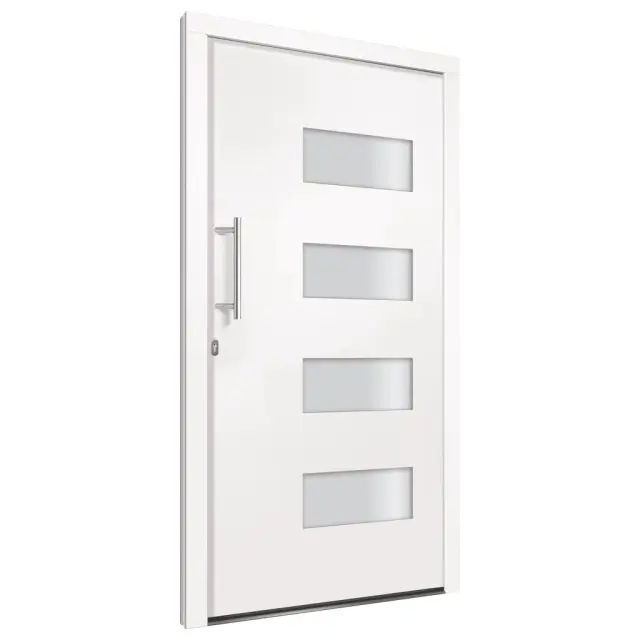Ta vhodna vrata so posebej zasnovana, da bodo obogatila vhodni prostor v vaši hiši ter zagotovila dodatno varnost vašega doma. Združujejo eleganco z odličnim dizajnom in tehničnimi lastnostmi za vse, ki želijo namestiti vrata. Ta vhodna vrata so opremljena s stabilnim okvirjem in polnilom, aluminijastim pragom, nastavljivimi tečaji, 5-smerno varnostno ključavnico s kavljem in sornikom, izolacijsko zasteklitvijo in ojačitvijo iz pocinkanega jekla. Vhodna vrata, izdelana iz aluminija in PVC materiala, navdušujejo tudi z robustno kakovostjo in visoko priročnostjo zaklepanja. Priložen je celoten komplet, vključno z inox potisnim ročajem, notranjo kljuko, ključi, tesnilnim trakom in kompletom za montažo.Barva: BelaMaterial: PVC, aluminij s prašnim premazom, sendvič polnilo s stiroporomVelikost: 110 x 210 cm (Š x V)Teža vrat: 69,6 kgOpremljena z aluminijastim pragomVelikost aluminijastega praga: 7 x 3 cm (Š x V)Debelina aluminijastega praga: 1,5 mmDebelina profila okvirja in vratnega krila: 70 mmS PVC folijo v notranjostiZunanjost s prašno premazano aluminijasto ploščo3-slojna toplotno zaščitna zasteklitev po ISO standarduVelikost zasteklitve: 46 x 20 cm (Š x V)3 tečaji nastavljivi po višini in globiniIntegrirana zaščita vzvodaOdpiranje znotraj 3-stranskega tesnila v vratnem krilu5-stopenjska varnostna zasnova s kavljem in sornikomPocinkana jeklena ojačitev pravokotnega profilaUD vrednost 1,3 W / m²KLevo odpiranje navznoterKomplet kljuk za vrata:Inox potisni ročaj 350 mmInox kljukaVključuje 2 rozetiMontažni set:Vključuje 8 plastičnih zagozd, 6 podložk, 6 stenskih sider in 6 kovinskih moznikov (montažni vijaki)Tesnilni trak:Predstisnjena pena8 m na roliPotrebno sestavljanje: DaPaket vsebuje:1 x Vrata1 x Komplet kljuk1 x Komplet ključevTesnilni trakKomplet za montažo 3056823