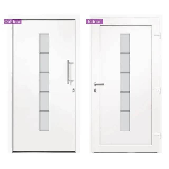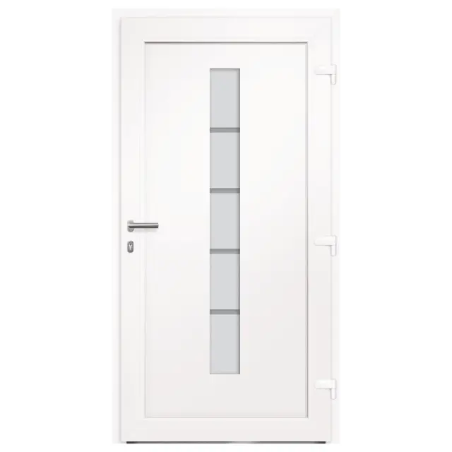 Ta vhodna vrata so posebej zasnovana tako, da bodo obogatila vhodni prostor v vaši hiši ter zagotovila dodatno varnost vašega doma. Združujejo eleganco z odličnim dizajnom in tehničnimi lastnostmi za vse, ki želijo namestiti vrata. Ta vhodna vrata so opremljena s stabilnim okvirjem in polnilom, aluminijastim pragom, nastavljivimi tečaji, 5-smerno varnostno ključavnico s kavljem in sornikom, izolacijsko zasteklitvijo in ojačitvijo iz pocinkanega jekla. Vhodna vrata, izdelana iz aluminija in PVC materiala, navdušujejo tudi z robustno kakovostjo in visoko priročnostjo zaklepanja. Priložen je celoten komplet, vključno z inox potisnim ročajem, notranjo kljuko, ključi, tesnilnim trakom in kompletom za montažo.Barva: BelaMaterial: PVC, aluminij s prašnim premazom, sendvič polnilo s stiroporomVelikost: 100 x 200 cm (Š x V)Teža vrat: 60,3 kgOpremljena z aluminijastim pragomVelikost aluminijastega praga: 7 x 3 cm (Š x V)Debelina aluminijastega praga: 1,5 mmS PVC folijo v notranjostiZunanjost s prašno premazano aluminijasto ploščo3-slojna toplotno zaščitna zasteklitev po ISO standarduVelikost zasteklitve: 14 x 150 cm (Š x V)3 tečaji nastavljivi po višini in globiniIntegrirana zaščita vzvodaOdpiranje znotraj 3-stranskega tesnila v vratnem krilu5-stopenjska varnostna zasnova s kavljem in sornikomPocinkana jeklena ojačitev pravokotnega profilaUD vrednost 1,3 W / m²KDesno odpiranje navznoterKomplet kljuk za vrata:Inox potisni ročaj 350 mmInox kljukaVključuje 2 rozetiMontažni set:Vključuje 8 plastičnih zagozd, 6 podložk, 6 stenskih sider in 6 kovinskih moznikov (montažni vijaki)Tesnilni trak:Predstisnjena pena8 m na roliPotrebno sestavljanje: DaPaket vsebuje:1 x Vrata1 x Komplet kljuk1 x Komplet ključevTesnilni trakKomplet za montažo 3056806