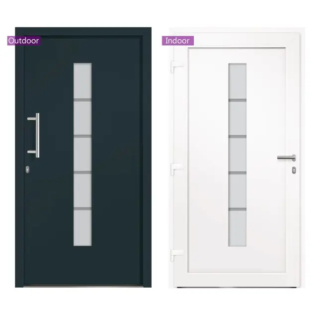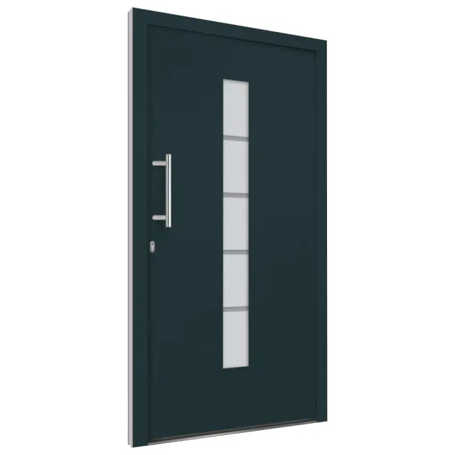 Ta vhodna vrata so posebej zasnovana, da bodo obogatila vhodni prostor v vaši hiši ter zagotovila dodatno varnost vašega doma. Združujejo eleganco z odličnim dizajnom in tehničnimi lastnostmi za vse, ki želijo namestiti vrata. Ta vhodna vrata so opremljena s stabilnim okvirjem in polnilom, aluminijastim pragom, nastavljivimi tečaji, 5-smerno varnostno ključavnico s kavljem in sornikom, izolacijsko zasteklitvijo in ojačitvijo iz pocinkanega jekla. Vhodna vrata, izdelana iz aluminija in PVC materiala, navdušujejo tudi z robustno kakovostjo in visoko priročnostjo zaklepanja. Priložen je celoten komplet, vključno z inox potisnim ročajem, notranjo kljuko, ključi, tesnilnim trakom in kompletom za montažo.Barva: AntracitnaMaterial: PVC, aluminij s prašnim premazom, sendvič polnilo s stiroporomVelikost: 100 x 210 cm (Š x V)Teža vrat: 62 kgOpremljena z aluminijastim pragomVelikost aluminijastega praga: 7 x 3 cm (Š x V)Debelina aluminijastega praga: 1,5 mmDebelina profila okvirja in vratnega krila: 70 mmS PVC folijo v notranjostiZunanjost s prašno premazano aluminijasto ploščo3-slojna toplotno zaščitna zasteklitev po ISO standarduVelikost zasteklitve: 14 x 150 cm (Š x V)3 tečaji nastavljivi po višini in globiniIntegrirana zaščita vzvodaOdpiranje znotraj 3-stranskega tesnila v vratnem krilu5-stopenjska varnostna zasnova s kavljem in sornikomPocinkana jeklena ojačitev pravokotnega profilaUD vrednost 1,3 W / m²KLevo odpiranje navznoterKomplet kljuk za vrata:Inox potisni ročaj 350 mmInox kljukaVključuje 2 rozetiMontažni set:Vključuje 8 plastičnih zagozd, 6 podložk, 6 stenskih sider in 6 kovinskih moznikov (montažni vijaki)Tesnilni trak:Predstisnjena pena8 m na roliPotrebno sestavljanje: DaPaket vsebuje:1 x Vrata1 x Komplet kljuk1 x Komplet ključevTesnilni trakKomplet za montažo 3056816