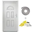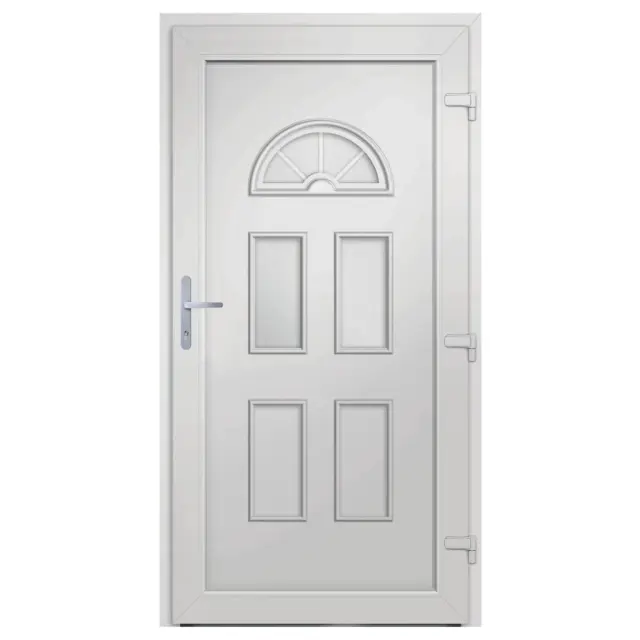 Ta vhodna vrata so posebej zasnovana za izboljšanje vhodnega prostora vašega doma. Zagotavljajo tudi dodatno varnost vaše hiše. Združujejo eleganco z odličnim dizajnom in tehničnimi lastnostmi za vse, ki iščejo vrata. Trpežen material: Vhodna vrata imajo PVC okvir. Odporen je na poškodbe zaradi termitov, korozivnih elementov in vlage.Nastavljivi tečaji: 3D nastavljivi tečaji omogočajo premikanje vrat v okvirju navzgor in navzdol ter od ene strani do druge, da ostanejo poravnana, hkrati pa vrata delujejo popolno.Varna zasnova: Ta vhodna vrata so opremljena s kakovostnim okvirjem, aluminijastim pragom, 5-točkovnim gobastim zaklepanjem, izolacijsko zasteklitvijo in 1,2 mm jekleno ojačitvijo za dodatno varnost. Dobro je vedeti:Za čim lažjo montažo je vsakemu izdelku priložen priročnik.Barva: BelaMaterial: PVC, polnilo s plastovitim jedromDebelina polnila: 24 mmVelikost: 98 x 208 cm (Š x V)Velikost okna (zgoraj): 44 x 20 cm (D x Š)Velikost okna (spodaj): 36 x 14,5 cm (D x Š)Podboj in vratno krilo debeline 70 mmVsestransko jekleno jedro v vratnem krilu in okvirjuVeč varnosti s 5-točkovnim zaklepanjem z gobastim zatičemOpremljena z 22 mm aluminijastim pragom3D nastavljivi tečaji (3 tečaji na vrata)4-12-4 ISO toplotno zaščitna zasteklitevVrednost UD 1,4 W/m²K in vrednost UG 1,1 W/m²KDesno odpiranje navznoterKomplet kljuk za vrata:2 aluminijasti kljukiMontažni set:Vključuje 8 plastičnih zagozd, 6 podložk, 6 stenskih sider in 6 kovinskih moznikov (montažni vijaki)Dolžina moznika: 152 mmTesnilni trak:Predstisnjena pena8 m na roliPaket vsebuje:1 x Vrata1 x Komplet kljuk1 x Komplet ključev1 x Tesnilni trak1 x Montažni set 3187919