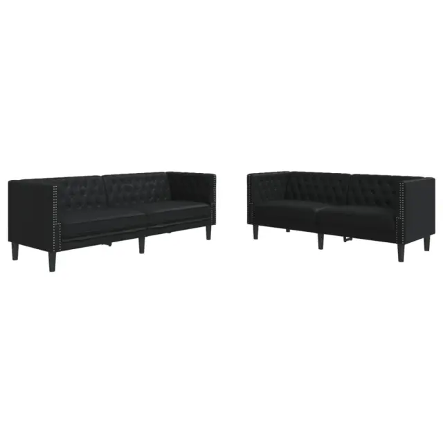 Ta sedežna garnitura chesterfield je odličen prostor za klepetanje, branje, gledanje televizije ali preprosto sprostitev. Namenjen je biti osrednja točka v vašem domu. Dolgotrajno in enostavno vzdrževanje: Umetno usnje je zelo trpežen material, ki je odporen na madeže, zato ga zlahka očistite z vlažno krpo. Njegova gladka površina mu daje eleganten videz, ki spominja na pravo usnje.Udobno sedenje: Kavč je zelo udoben z debelo oblazinjenimi sedeži, nasloni za roke in hrbtnimi blazinami.Stil chesterfield: S klasičnim naslonjalom za hrbet z gumbi in nasloni za roke ter enotno višino naslonjala in naslonov za roke bo popestril vsak prostor, saj zagotavlja slog in udobje.Podporne noge: Fotelj je podprt s čvrstimi nogami, ki zagotavljajo njegovo stabilnost, varnost in trdnost.Barva: ČrnaMaterial: Umetno usnje (75% polivinilklorid, 20% poliester, 5% bombaž), kovina, vezan les, trden lesMaterial polnila: PenaMaksimalna nosilnost: 110 kgPotrebno sestavljanje: DaKavč dvosed:Celotne dimenzije: 174 x 74,5 x 70,5 cm (Š x G x V)Širina sedeža: 158 cmGlobina sedeža: 59 cmVišina sedeža, merjena od tal: 41,5 cmVišina naslonjala za roke od tal: 70,5 cmKavč trosed:Celotne dimenzije: 194 x 74,5 x 70,5 cm (Š x G x V)Širina sedeža: 178 cmGlobina sedeža: 59 cmVišina sedeža, merjena od tal: 41,5 cmVišina naslonjala za roke od tal: 70,5 cmPaket vsebuje:1 x Kavč dvosed1 x Kavč trosed 3209274